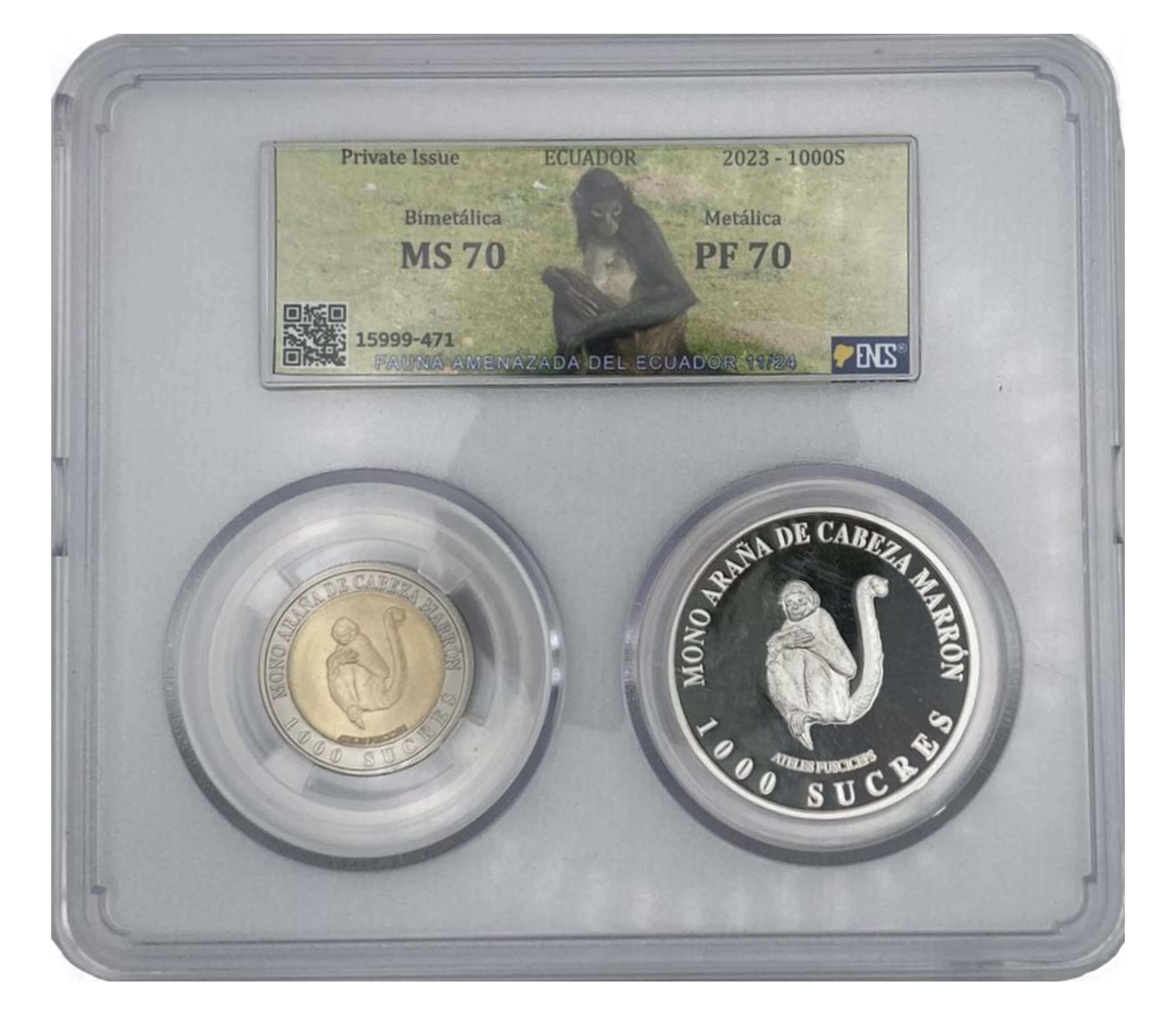 Ecuador, Mil Sucres 2023, Mono Araña de Cabeza Marrón - Bimetálica
