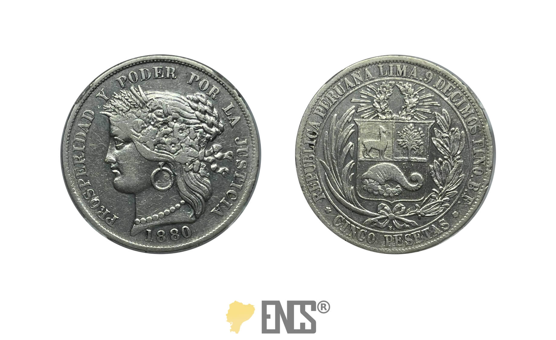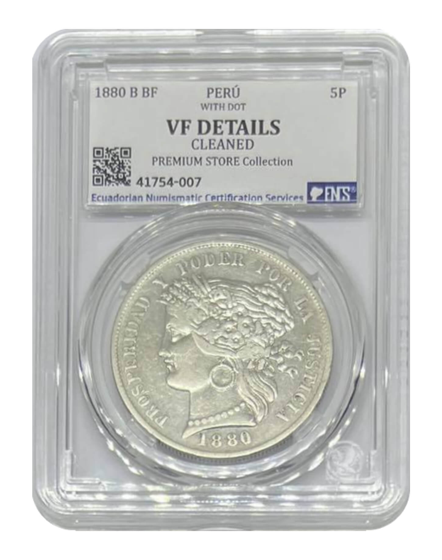 Perú, 5 Pesetas 1880 B BF